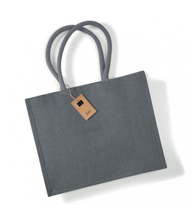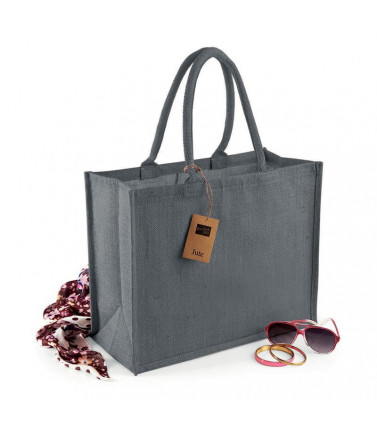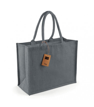 100% juta. dimensioni bxhxp: 33x42x19 cm, capacità 21 litri, area stampabile bxh: 24x34 cm massimo. manici di cotone robusto con colori a contrasto.