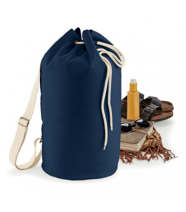 100% cotone canvas organico. sacca in tessuto certificato control union. chiusura con cordino regolabile. dimensioni: 25 x 53 x 25 cm, capacita': 20 litri, area stampabile: 40 x 40 cm.