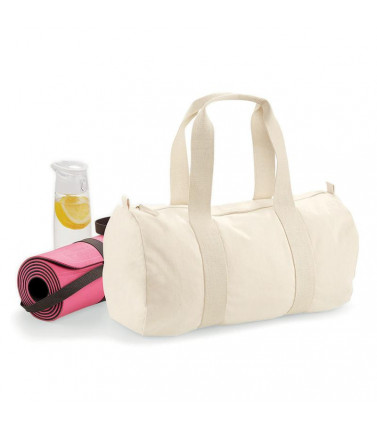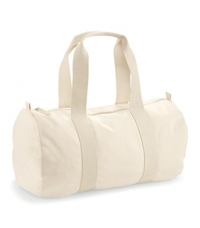 100% cotone organico canvas. borsone in tessuto certificato control union. chiusura con zip, manici a tracolla. dimensioni: 50 x 25 x 25 cm, capacita': 20 litri, area di stampa parte anteriore: 13 x 12 cm, estremita': 15 x 15 cm.