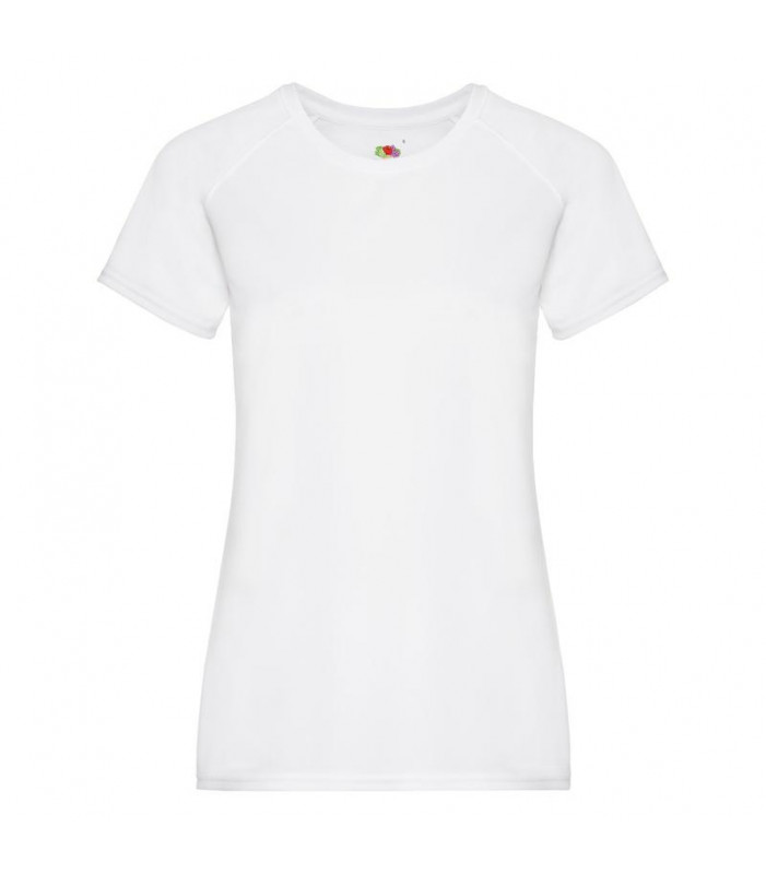 100% poliestere traspirante ad asciugatura rapida. maniche raglan con cuciture nascoste, taglio femminile con cuciture laterali. etichetta collo stampata.