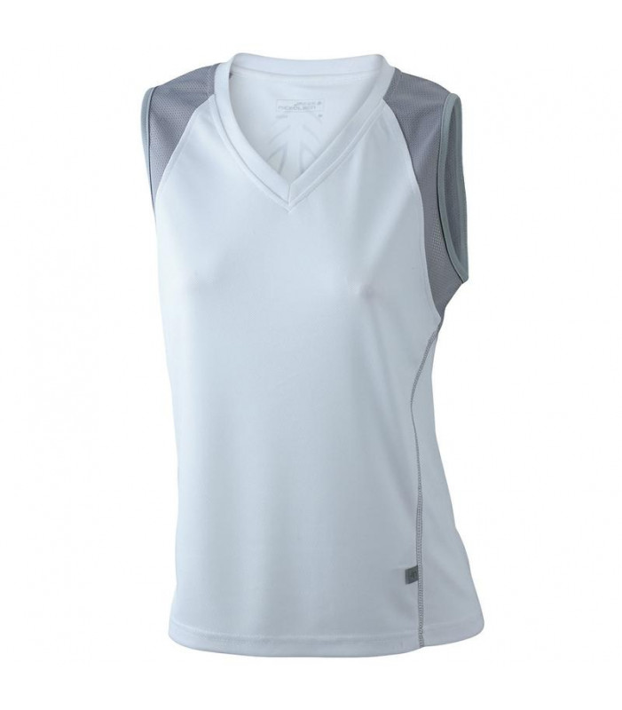 top traspirante regola l'umiditã , ad asciugatura rapida, leggero e comodo, cuciture piatte a contrasto, bordini e transfer riflettenti, leggermente sciancrata, collo a v, tessuto esterno (140 g/mâ²): 100% poliestere