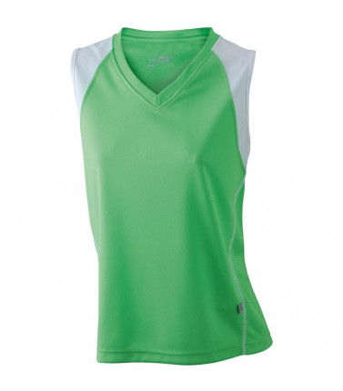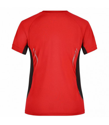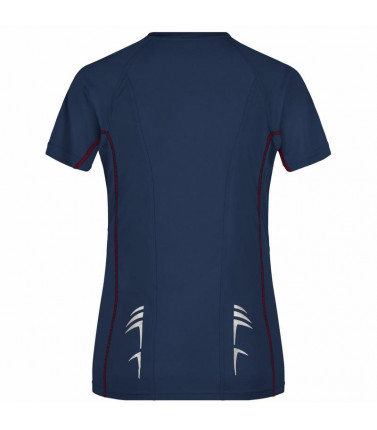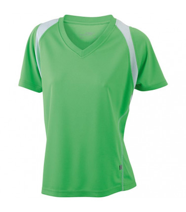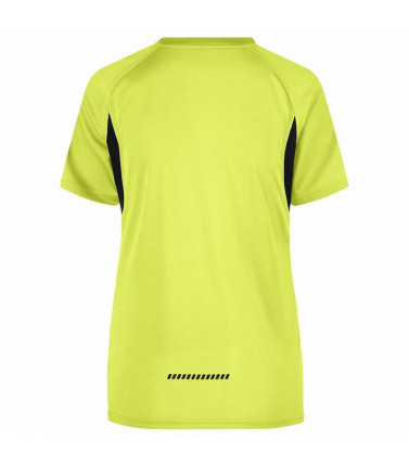 top traspirante regola l'umiditã , ad asciugatura rapida, leggero e comodo, cuciture piatte a contrasto, bordini e transfer riflettenti, leggermente sciancrata, collo a v, tessuto esterno (140 g/mâ²): 100% poliestere