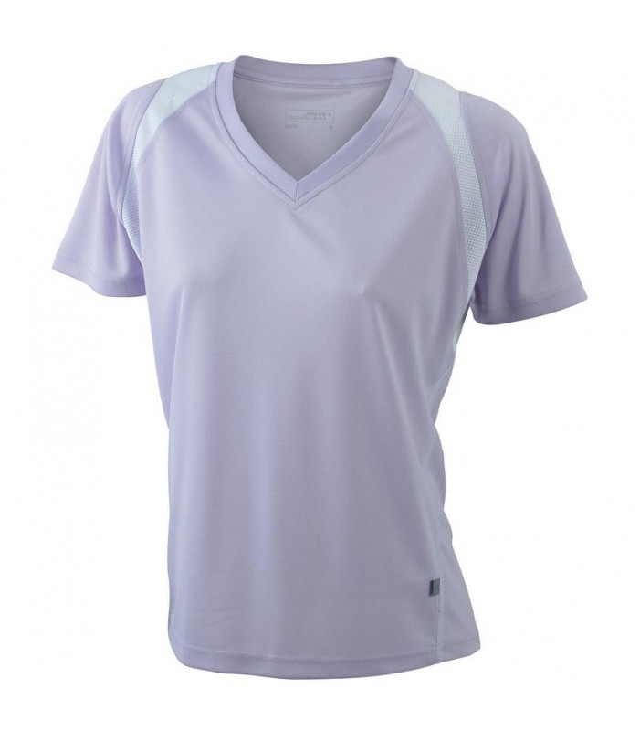 t-shirt collo a v 100% poliestere traspirante. tessuto leggero e comodo, regola lumidità, ad asciugatura rapida. cuciture piatte, bordini e transfer riflettenti. leggermente sciancrata.