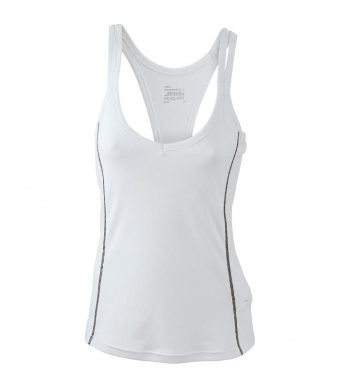 sport-top con dettagli riflettenti poliestere funzionale di alta qualitã , regola l'umiditã , traspirante e ad asciugatura rapida, leggera e comoda, cuciture riflettenti sul davanti. stampa reflex sulla schiena, inserti in mesh nell'ascella e sulla schiena tessuto esterno (140 g/mâ²): 100% poliestere coolmaxâ®fabricâ® active, donna, riflesso, sport, taglio sciancrato. tank/tops