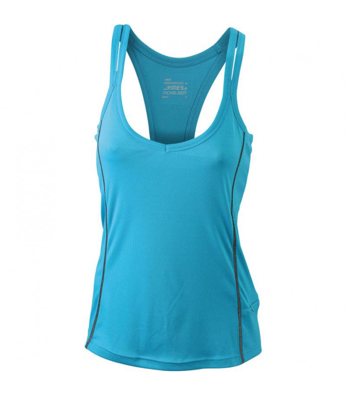 sport-top con dettagli riflettenti poliestere funzionale di alta qualitã , regola l'umiditã , traspirante e ad asciugatura rapida, leggera e comoda, cuciture riflettenti sul davanti. stampa reflex sulla schiena, inserti in mesh nell'ascella e sulla schiena tessuto esterno (140 g/mâ²): 100% poliestere coolmaxâ®fabricâ® active, donna, riflesso, sport, taglio sciancrato. tank/tops