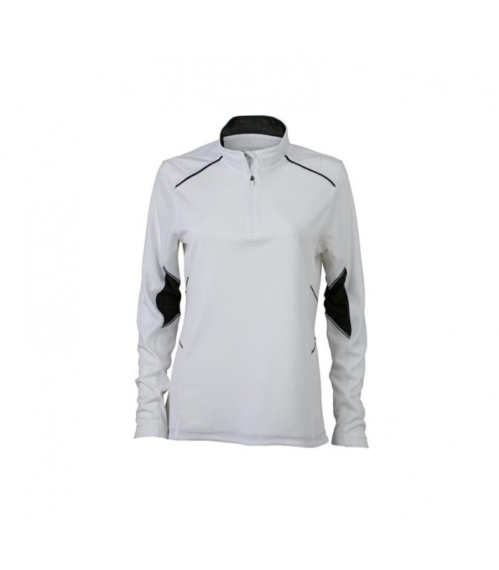 t-shirt da corsa traspirante regola l'umiditã , asciuga rapidamente, ha un peso leggero ed 㨠comoda da indossare, collo a listino con chiusura lampo, inserti e cuciture flatlock in colore contrastante disegno riflettente sul retro, leggermente avvitato. tessuto esterno (125 g/mâ²): 100% poliestere , donna, manica lunga, policromo, sport, colletto alla coreana, topcoolâ®
