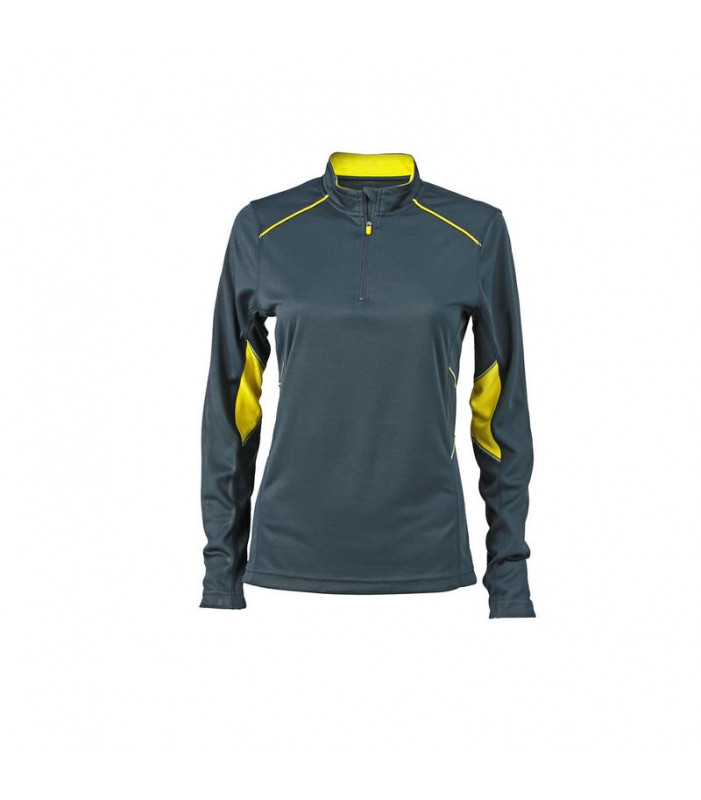 t-shirt da corsa traspirante regola l'umiditã , asciuga rapidamente, ha un peso leggero ed 㨠comoda da indossare, collo a listino con chiusura lampo, inserti e cuciture flatlock in colore contrastante disegno riflettente sul retro, leggermente avvitato. tessuto esterno (125 g/mâ²): 100% poliestere , donna, manica lunga, policromo, sport, colletto alla coreana, topcoolâ®