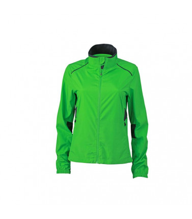 100% poliestere. giacca leggera da corsa, regola lumidità e asciuga rapidamente. antivento e idrorepellente, traspirante. cerniera nascosta con protezione del mento, due tasche laterali, disegno riflettente sul retro. inserti in tessuto a rete di colore