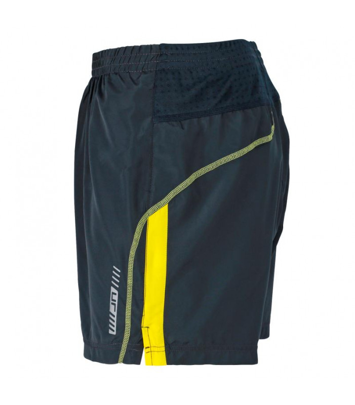 pantaloncini corti in 100% poliestere. tessuto leggero e traspirante, antivento e idrorepellente. slip interno in tessuto a rete, cintura elastica con cordoncino e piccolo taschino con chiusura lampo. disegno riflettente.