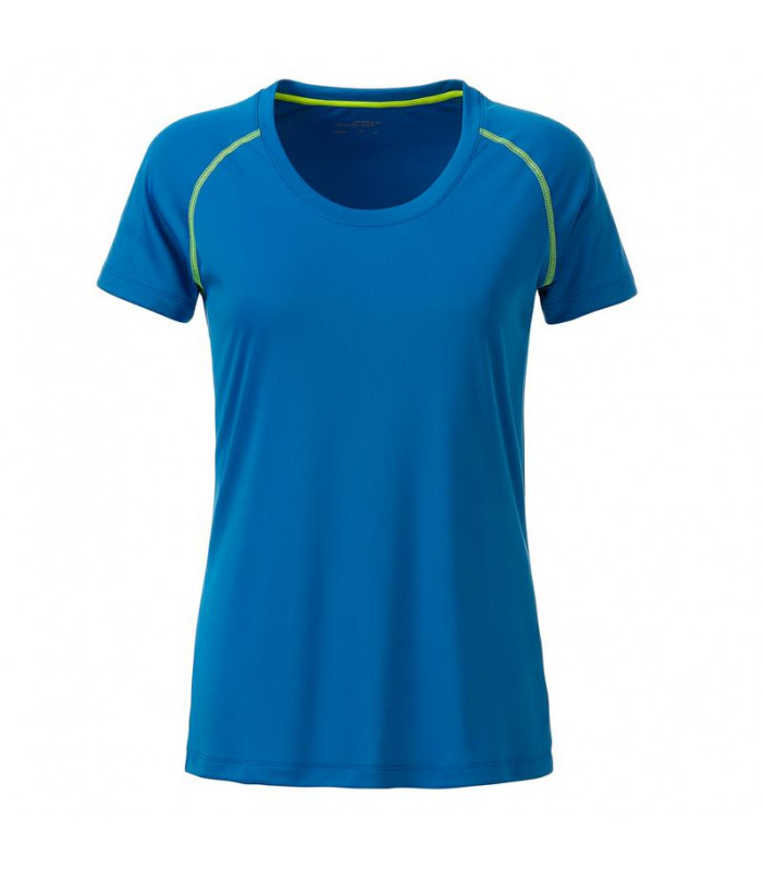 t shirt donna per fitness e sport transpirante e con regolazione umiditã , asciugatura rapida, leggera e confortevole, maniche raglan, collo rotondo, contrasto cuciture piatte sul davanti e sul retro, leggermente avvitata tessuto esterno (130 g/mâ²): 100% poliestere, manica corta, donna, policromo