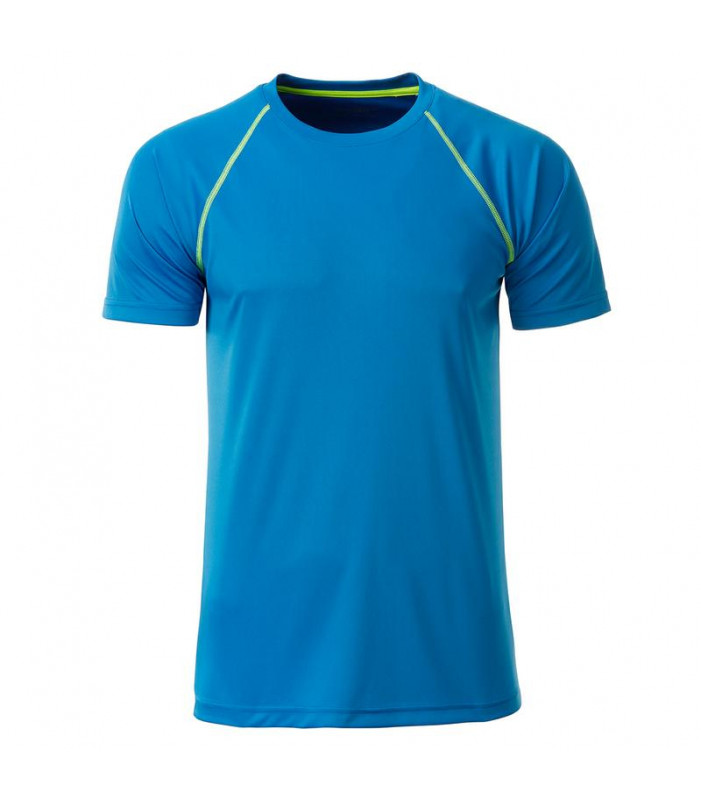 t shirt uomo per fitness e sport transpirante e con regolazione umiditã , asciugatura rapida, leggera e confortevole, maniche raglan, collo rotondo, contrasto cuciture piatte sul davanti e sul retro. tessuto esterno (130 g/mâ²): 100% poliestere, manica corta, policromo