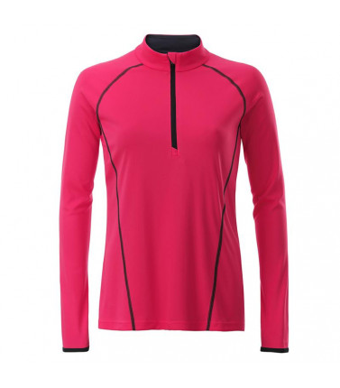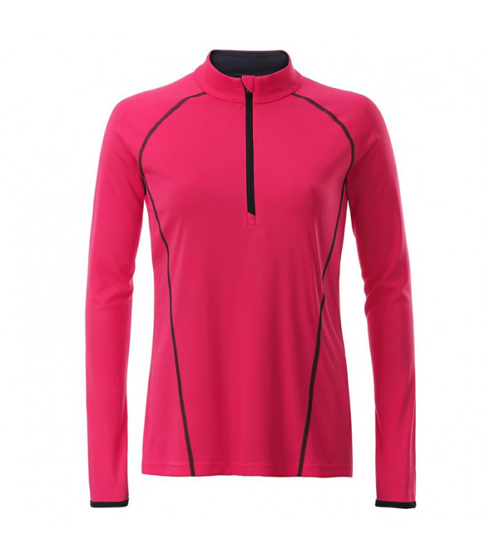 t shirt manica lunga per fitness e sport transpirante e con regolazione umiditã . asciugatura rapida, leggera e confortevole. maniche raglan, collo alto. cuciture in contrasto sul davanti e sul retro, zip con protezione per il mento, leggermente avvitata tessuto esterno (130 g/mâ²): 100% poliestere, donna, manica lunga, policromo