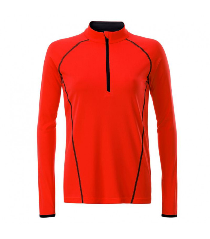 t shirt manica lunga per fitness e sport transpirante e con regolazione umiditã . asciugatura rapida, leggera e confortevole. maniche raglan, collo alto. cuciture in contrasto sul davanti e sul retro, zip con protezione per il mento, leggermente avvitata tessuto esterno (130 g/mâ²): 100% poliestere, donna, manica lunga, policromo