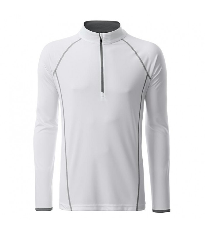 t shirt manica lunga per fitness e sport transpirante e con regolazione umiditã . asciugatura rapida, leggera e confortevole. maniche raglan, collo alto. cuciture in contrasto sul davanti e sul retro. zip con protezione per il mento. tessuto esterno (130 g/mâ²): 100% poliestere, manica lunga, policromo