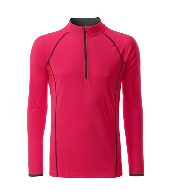 t shirt manica lunga per fitness e sport transpirante e con regolazione umiditã . asciugatura rapida, leggera e confortevole. maniche raglan, collo alto. cuciture in contrasto sul davanti e sul retro. zip con protezione per il mento. tessuto esterno (130 g/mâ²): 100% poliestere, manica lunga, policromo