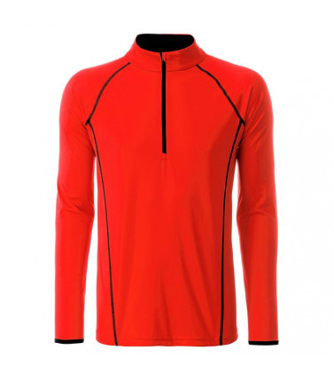 t shirt manica lunga per fitness e sport transpirante e con regolazione umiditã . asciugatura rapida, leggera e confortevole. maniche raglan, collo alto. cuciture in contrasto sul davanti e sul retro. zip con protezione per il mento. tessuto esterno (130 g/mâ²): 100% poliestere, manica lunga, policromo