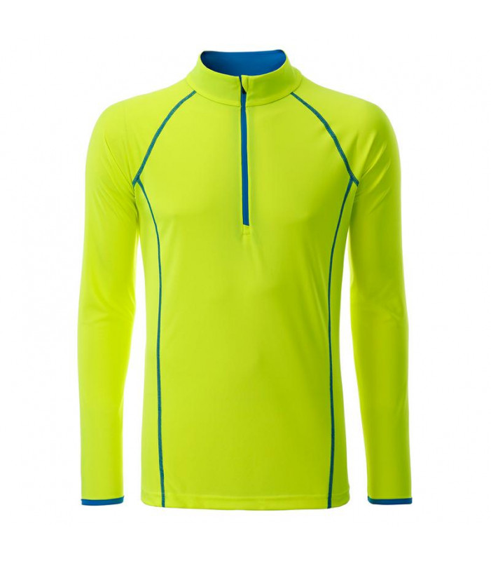 t shirt manica lunga per fitness e sport transpirante e con regolazione umiditã . asciugatura rapida, leggera e confortevole. maniche raglan, collo alto. cuciture in contrasto sul davanti e sul retro. zip con protezione per il mento. tessuto esterno (130 g/mâ²): 100% poliestere, manica lunga, policromo