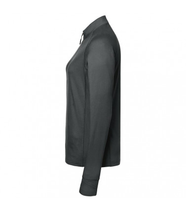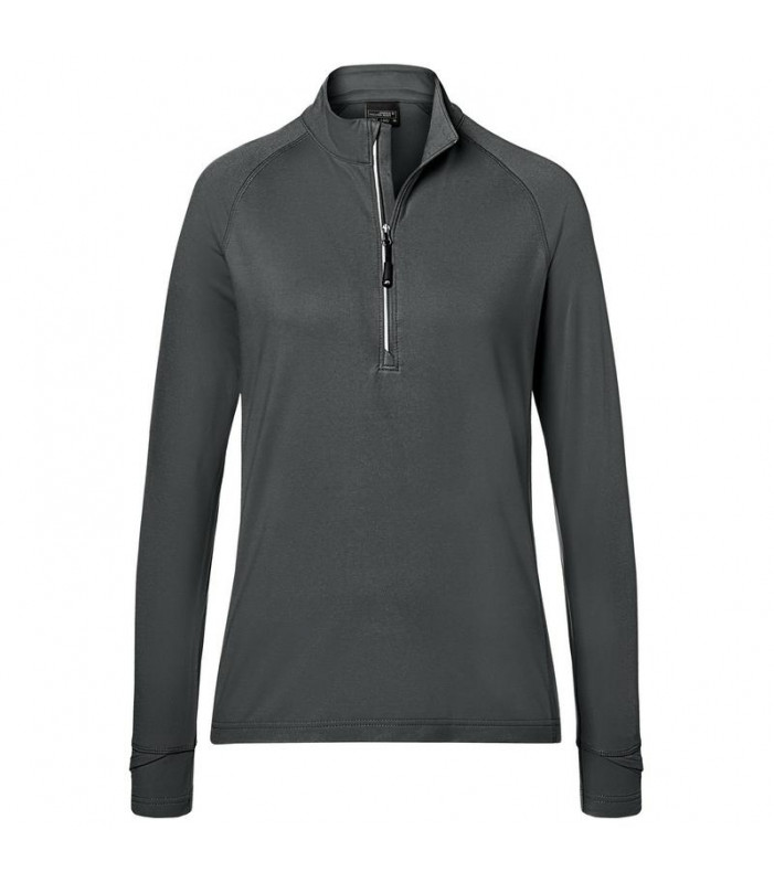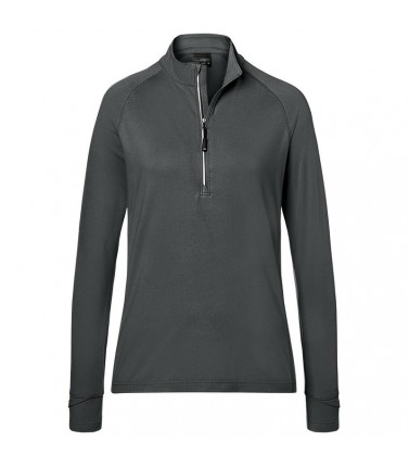 88% poliestere, 12% elastan. camicia mezza zip, morbida, tessuto bielastico e di facile manutenzione, sgarzata, zip nascosta con piping riflettente e protezione per il mento, collo alto, maniche raglan con passante per pollice, cuciture piatte tono su tono, dettagli riflettenti sul retro, leggermente sfiancata.