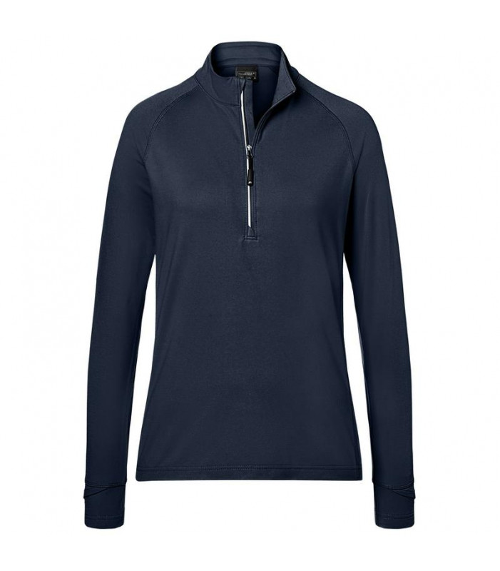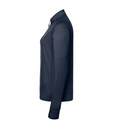 88% poliestere, 12% elastan. camicia mezza zip, morbida, tessuto bielastico e di facile manutenzione, sgarzata, zip nascosta con piping riflettente e protezione per il mento, collo alto, maniche raglan con passante per pollice, cuciture piatte tono su tono, dettagli riflettenti sul retro, leggermente sfiancata.